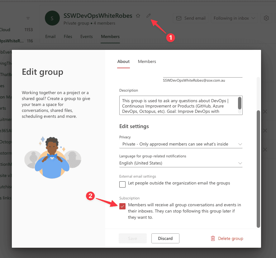 - Click the pencil icon to edit the group settings.