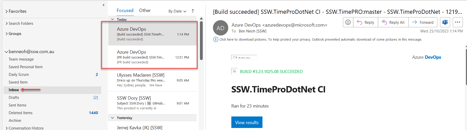 Emails that are automatically generated can quickly overload your inbox with less important messages (e.g. notifications from Microsoft Teams, GitHub, Azure Devops, etc).