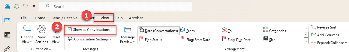 - Tick the "Show as Conversations" option as displayed in the image.