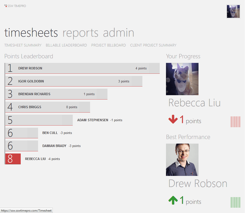 Figure: Good Example – TimePro uses gamification to encourage users to do their timesheets on time