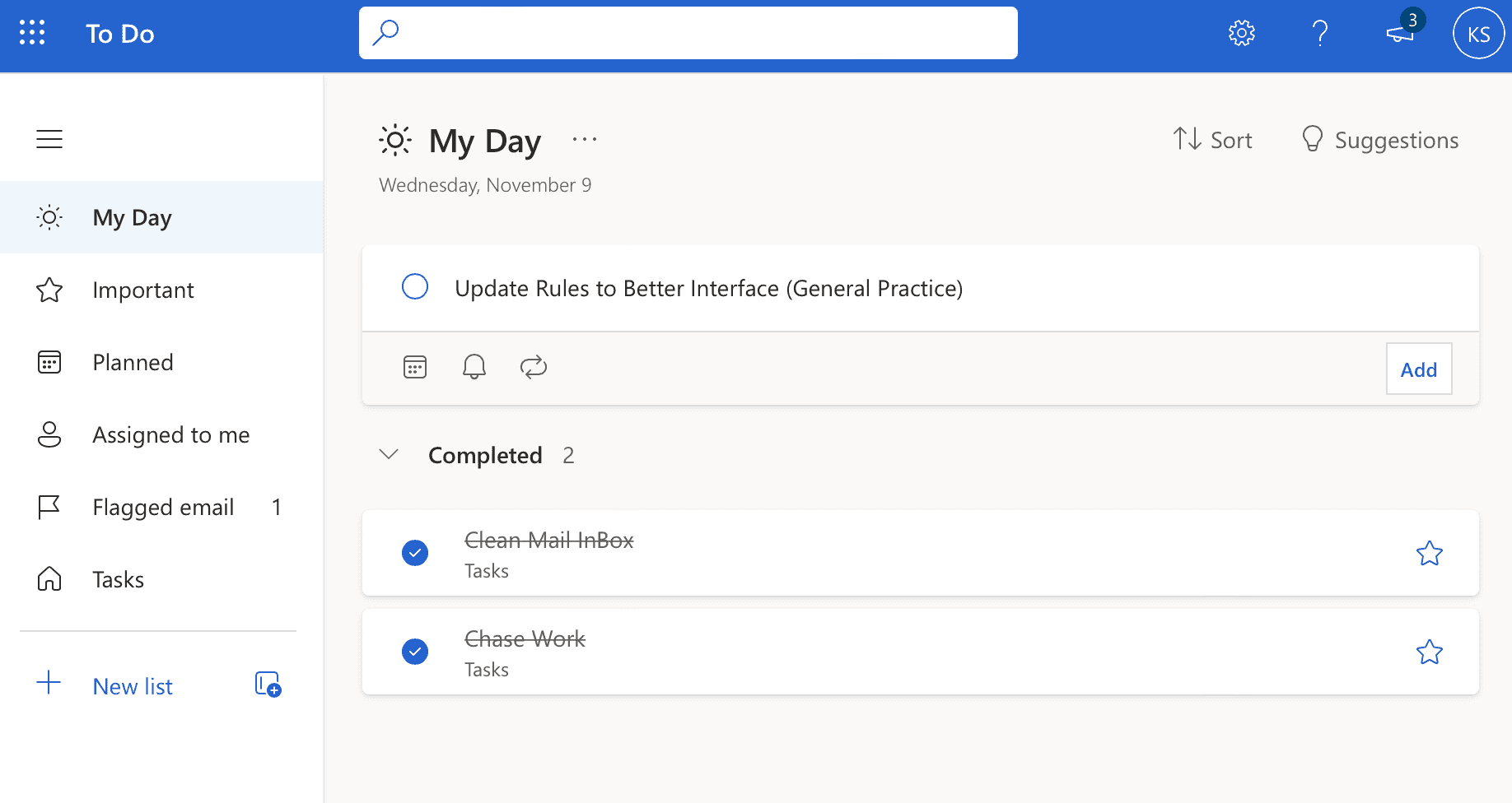 Figure: Good example - Microsoft Outlook Todo's completed tasks are struck-through