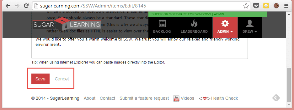 To avoid users accidentally cancelling an operation when they thought they where clicking the save button you should always make your cancel button less obvious.