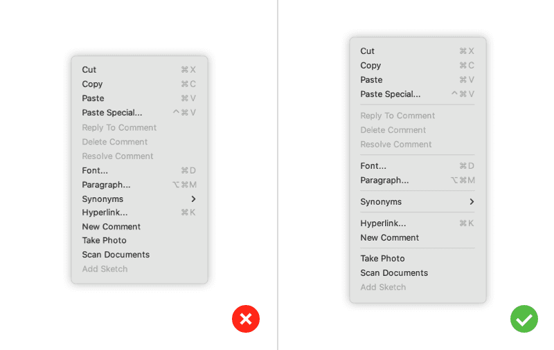 Figure: Good example - Text in content color (white in this dark mode example) with a green tick
