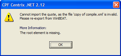Figure: Bad Example - A message box that does not intuitively alert the user - This is confusing, because it uses different terminology to the title ("estimate" instead of "quote")