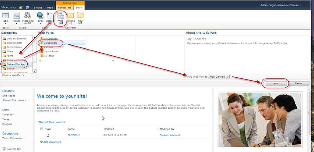 Figure: Bad example - if this was a popup form it would be easier to focus on where to look (as a minimum you would be looking at half the screen) For example, adding a webpart in SharePoint 2010 should use a popup form. See our suggestion to Microsoft.