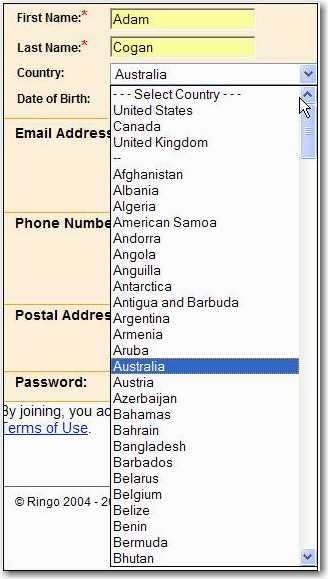Figure: Bad example - Firstly because it is manual, plus what about the 4th, 5th, etc most common used countries We believe all combos should be able to be sorted ascending/descending and by popularity asc/desc.