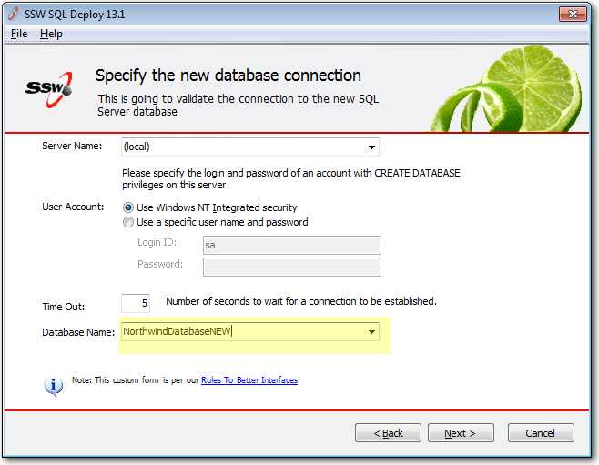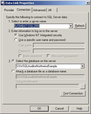 While a nice form, it would have taken quite some developer time to get it right. Not only that, it is a little bit different than what a user has seen before. Now look at this UDL from one of our utilities SSW SQL Auditor: