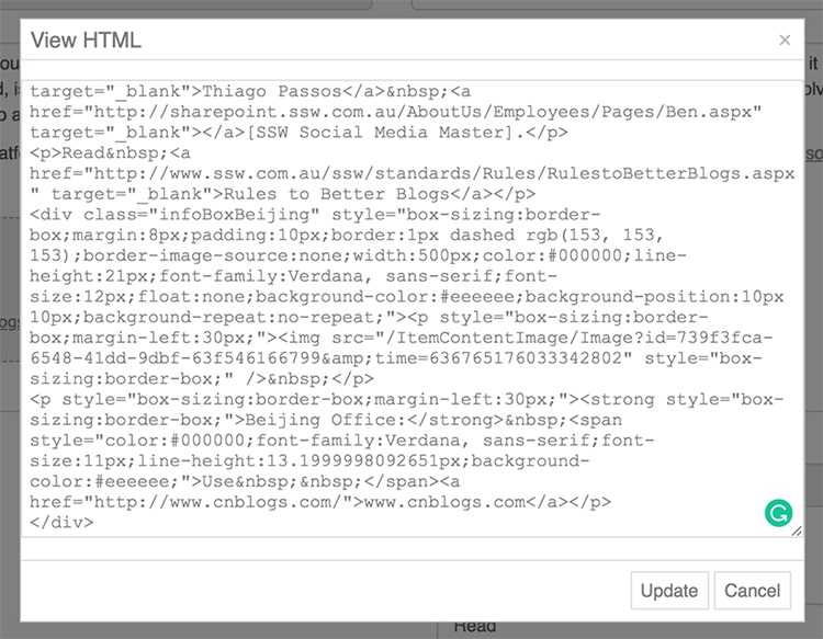 Figure: "Edit" button to encourage users updating the content HTML is frightening for unfamiliar users, as one wrong tag or an inline styling can break the whole page view.