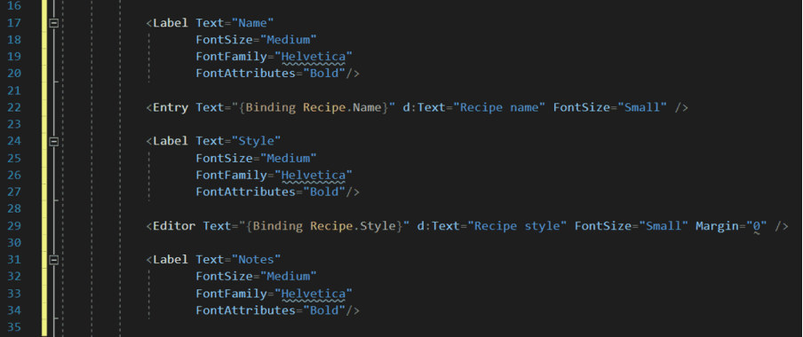 xmlns:d="http://xamarin.com/schemas/2014/forms/design" xmlns:mc="http://schemas.openxmlformats.org/markup-compatibility/2006" mc:Ignorable="d"If your Xamarin and Visual Studio versions are up to date these namespaces will automatically be included in any new XAML file.