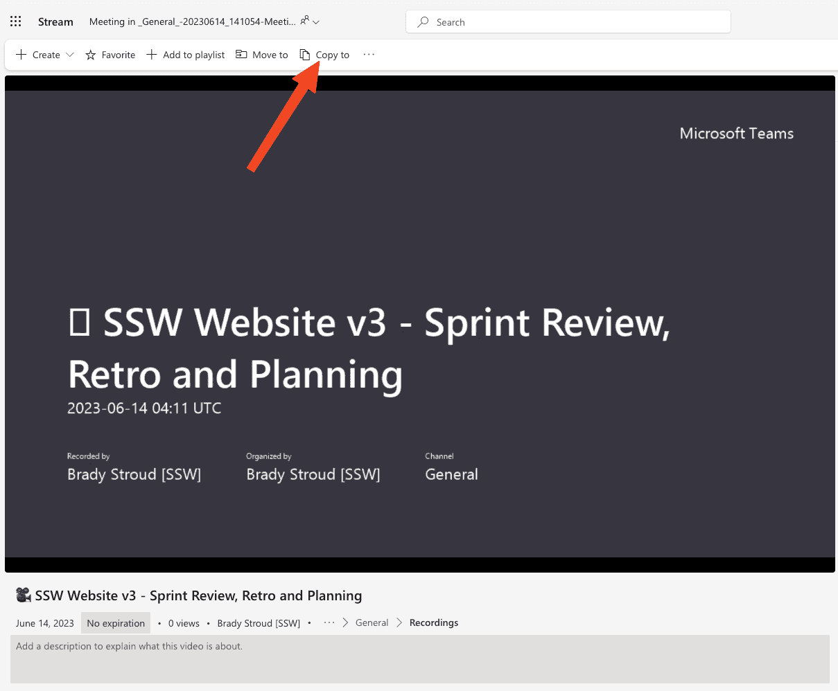 Figure: Click 'Copy to' - Move the recording to a relevant Team's channel
