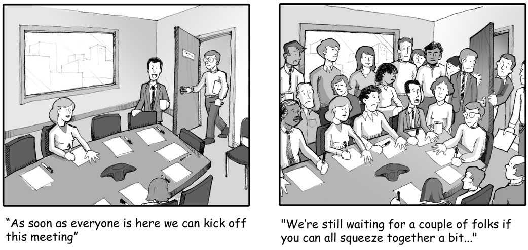 - Do not dive into the main agenda without the key participants present