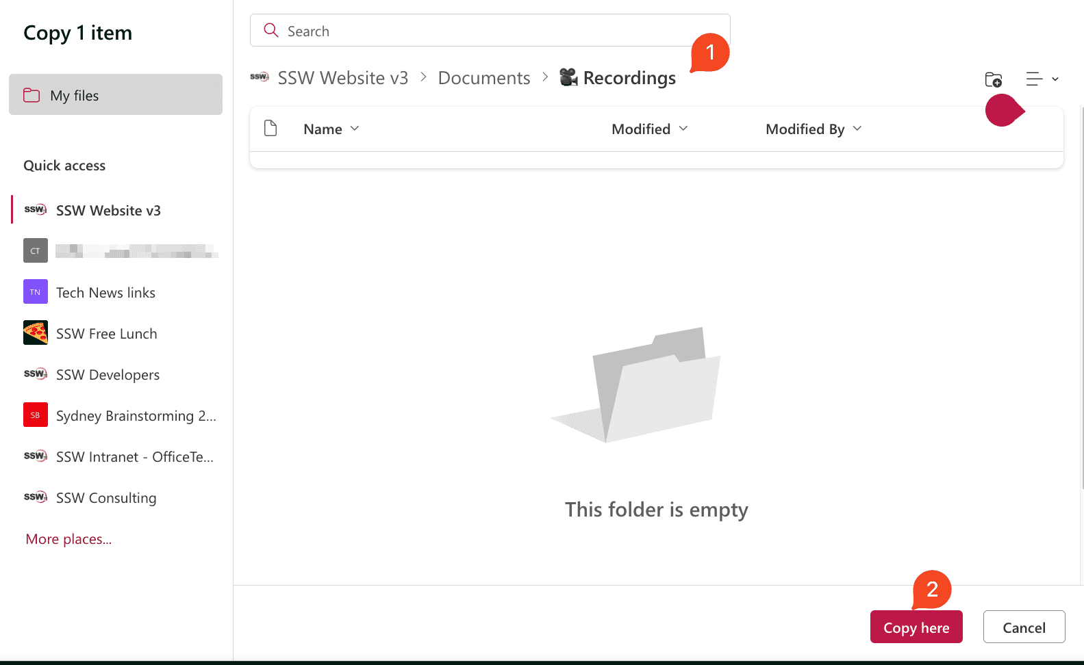 - Click the 'Copy to' button and move the file to a relevant Team's channel