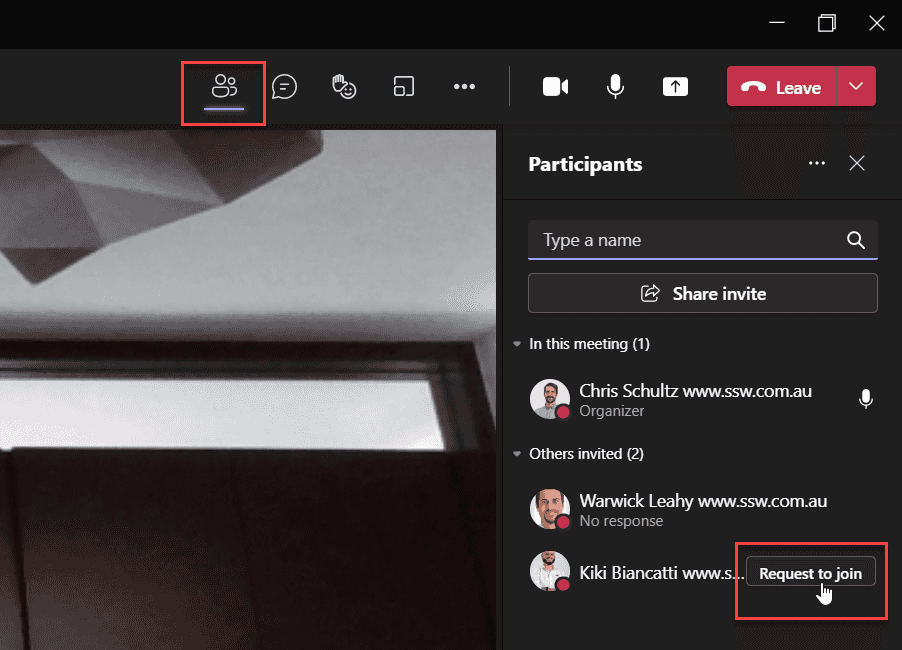 Figure: In Microsoft Teams, add someone to the call by Show Participants | Request to join Microsoft Teams makes it super easy to record meetings, whenever you are presenting something important or making impactful decisions, the meeting scribe should 'hit record'.