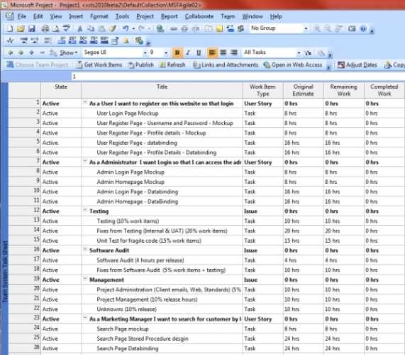 Thankfully Project Server 2013 or 2010 allows us to stay on top of the project with live updates with TFS and the project gantt chart to track progress and delays.
