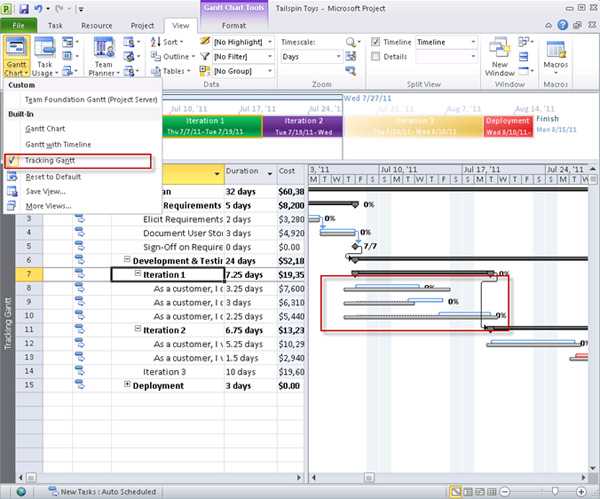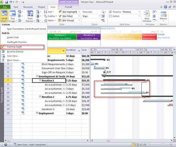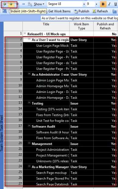 To Track progress, we will use the "Team System Task Sheet" view; this can be selected from the "View" menu.