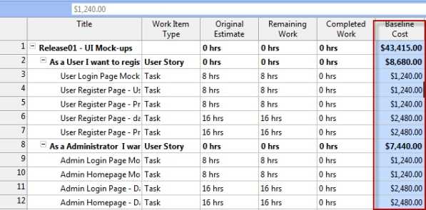 When you switch back to “Team System Task Sheet”, you will want to add the following fields so we can see the cost status: