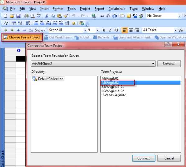 Note: To have this working properly, you need VSTS 2010 because it has better MS Project integration.