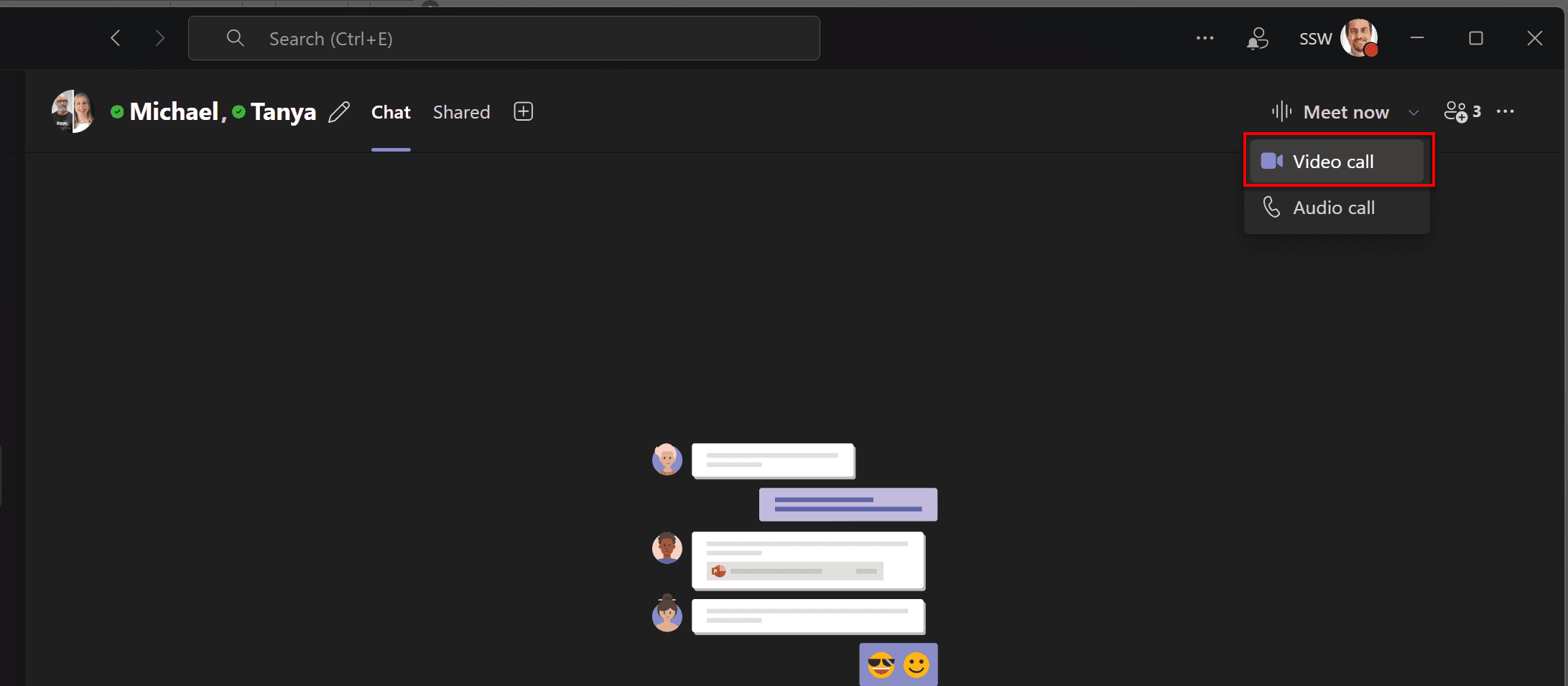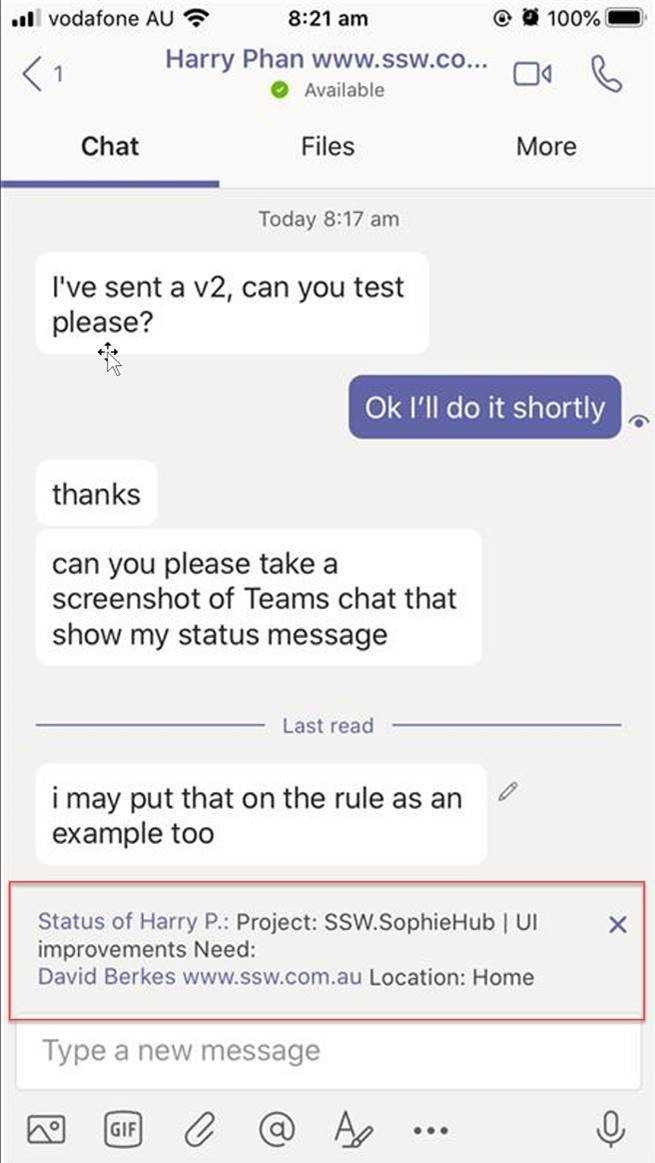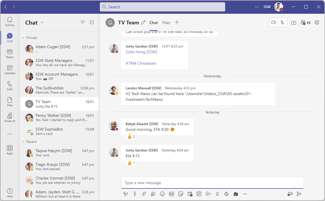 Although you will also have a dedicated Team (as per SSW.Rules | Do you know how to create a Team?), which is great for storing documents and files, as well as persisting notifications, you’re better to communicate in a chat rather than a channel.