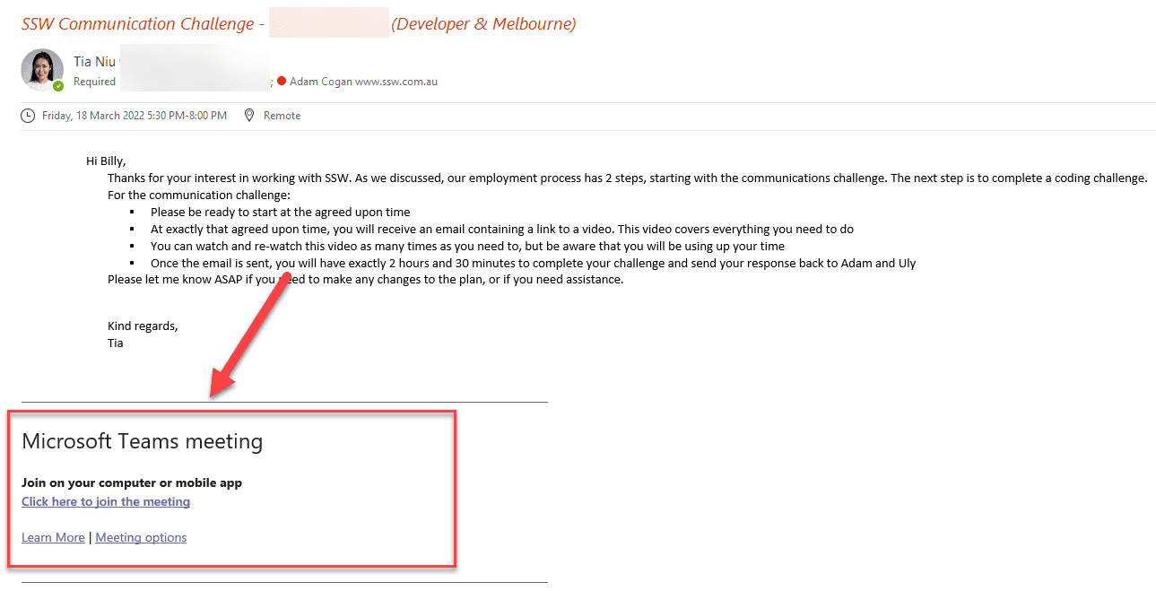 Figure: Send an email to your client confirming you will contact them through Teams