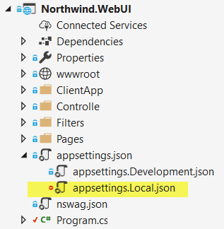 Figure: #1 Create an appsettings.Local.json file. Set this to be ignored by your source code control system