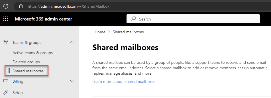 Figure: Shared mailboxes are created in their own section under the Teams & groups heading #6 Dynamic distribution groups