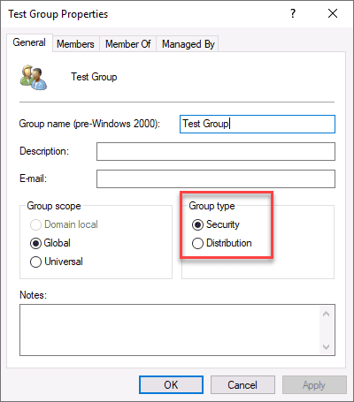 These groups are created and managed within an organization's local network, using on-premises infrastructure such as Active Directory. These groups typically have limited collaboration features and are primarily used for email distribution and security management. If you have to manage the groups, users, or laptops on-premises that are domain-joined it is easier to create a security group in AD.