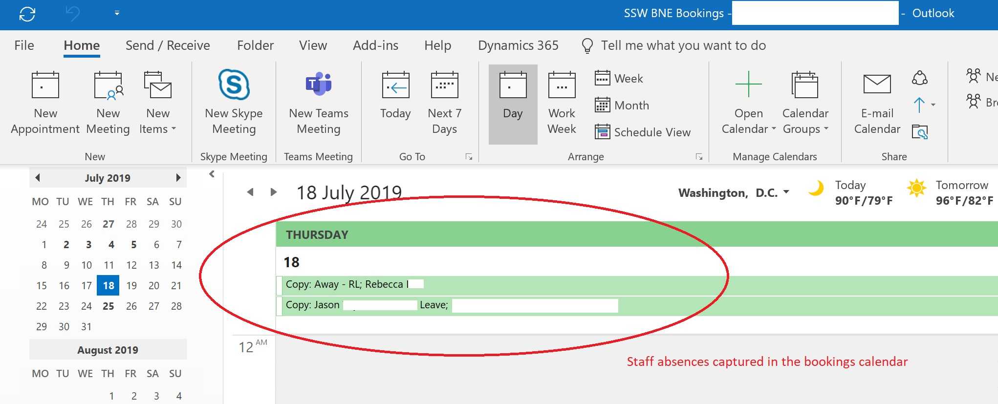Figure: Calendar with location set - If you find you are having to constantly remind someone they are missing without the paperwork e.g. on leave with no appointment, WFH with no email, etc. then please follow: https://www.ssw.com.au/rules-legacy/reduce-your-admin/