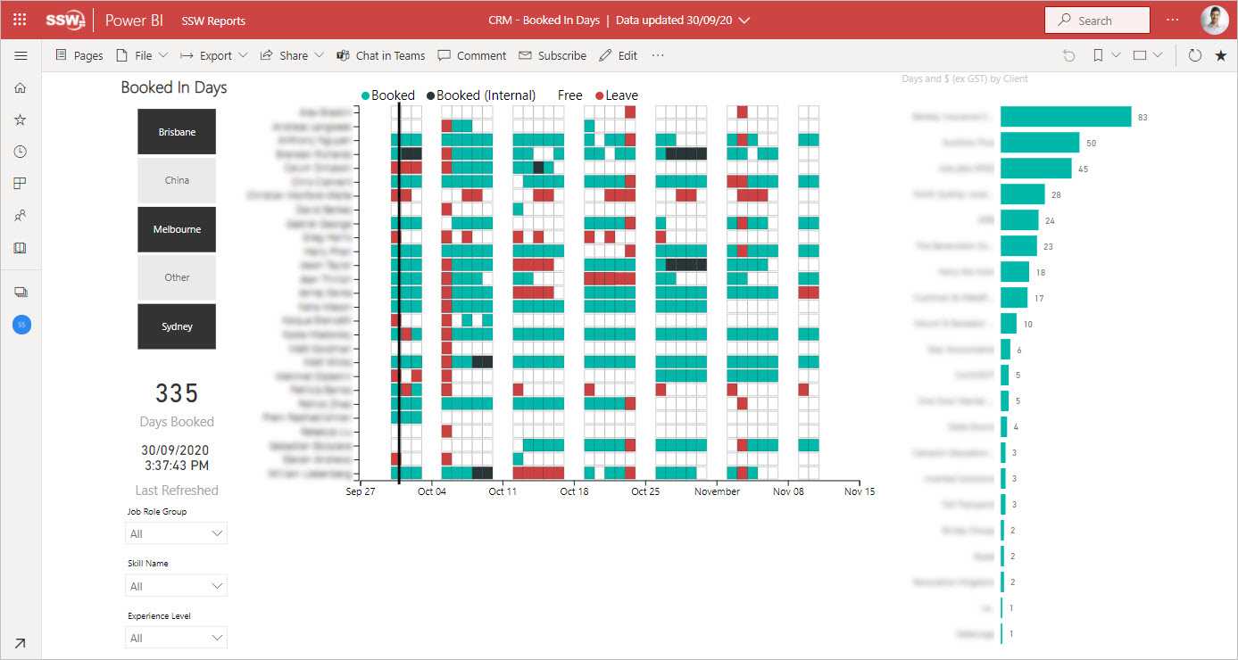 - Review a staffing report – consider a report in Power BI or a similar tool that shows which of your staff are booked for what activities on any given day
