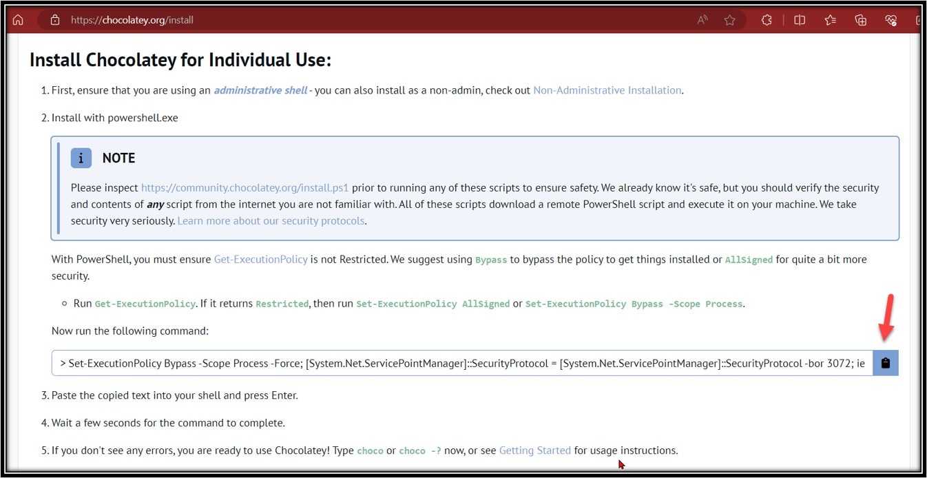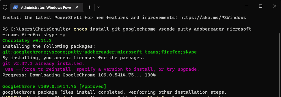 Figure: installing Git with Chocolatey To get started, open PowerShell and follow the instructions on the Chocolatey website.