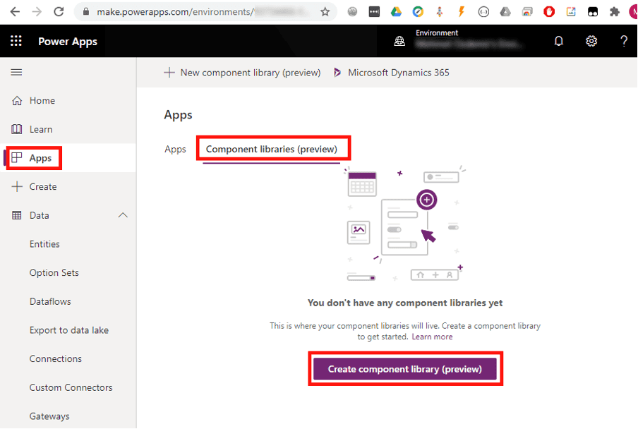Figure: Create a new component library For more information on Component libraries see documentation here: https://docs.microsoft.com/en-us/powerapps/maker/canvas-apps/component-library?WT.mc_id=DX-MVP-33518
