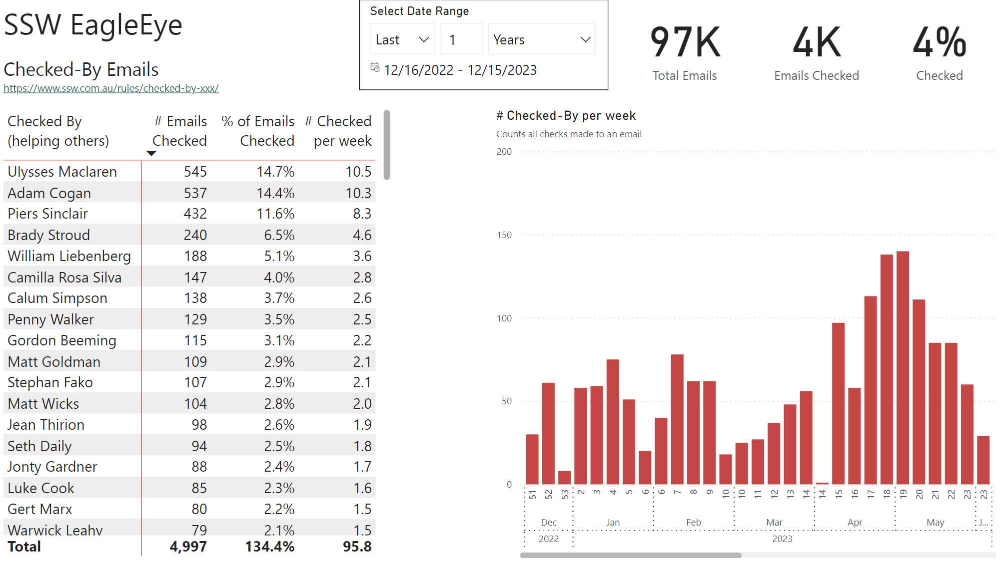 Figure: Good example - We can see that Uly checked more emails than anyone else in the company