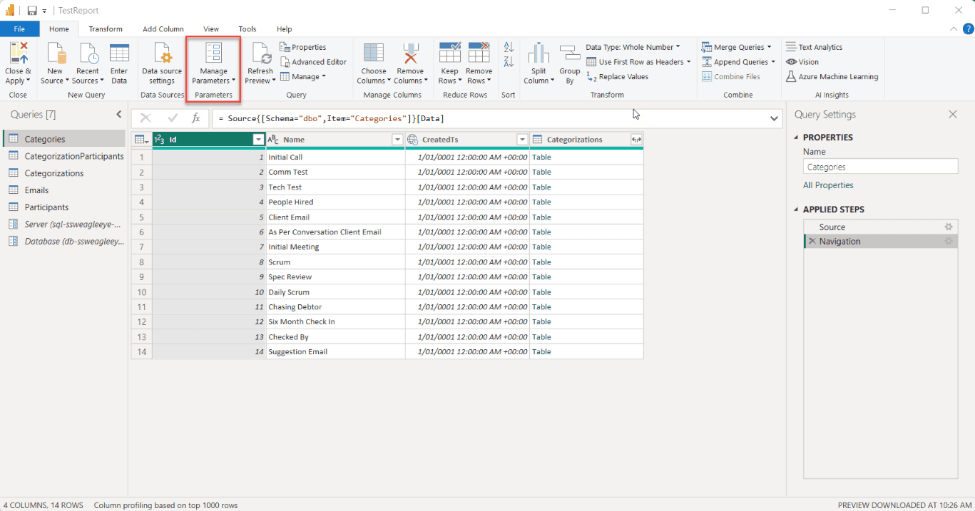 Set Up Database Parameters in Power BI