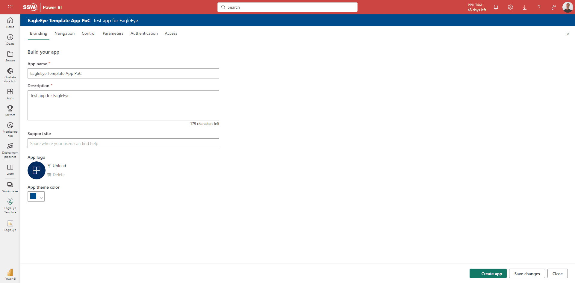 Update the app once you have new changes in the report by clicking "Create App"