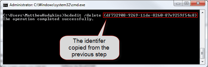 bcdedit /delete {identifier}