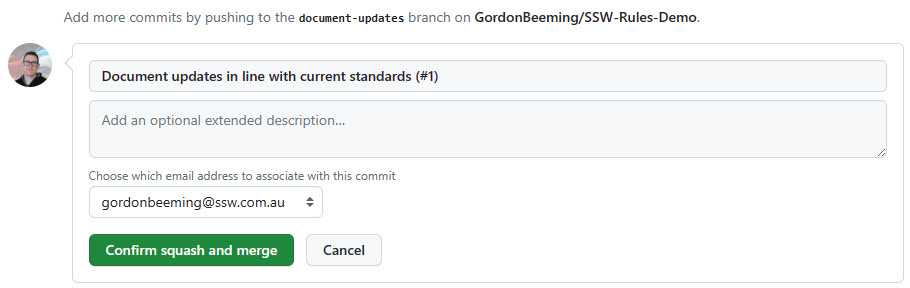 Granularity of commits Descriptive commit messages Easy to maintain Never lose history Squashing Pull Requests β β β Good Pull Request titles β β Preserving file history β β Merging multiple repositories β β Normally, the best way to provide feedback on content changes is to use the change X to Y format. When it comes to reviewing Pull Requests (PRs) in GitHub, this is not the case - it's inefficient for the PR owner. They have to manually interpret each suggested change, implement them in the code, and then commit the changes, which can be time-consuming.