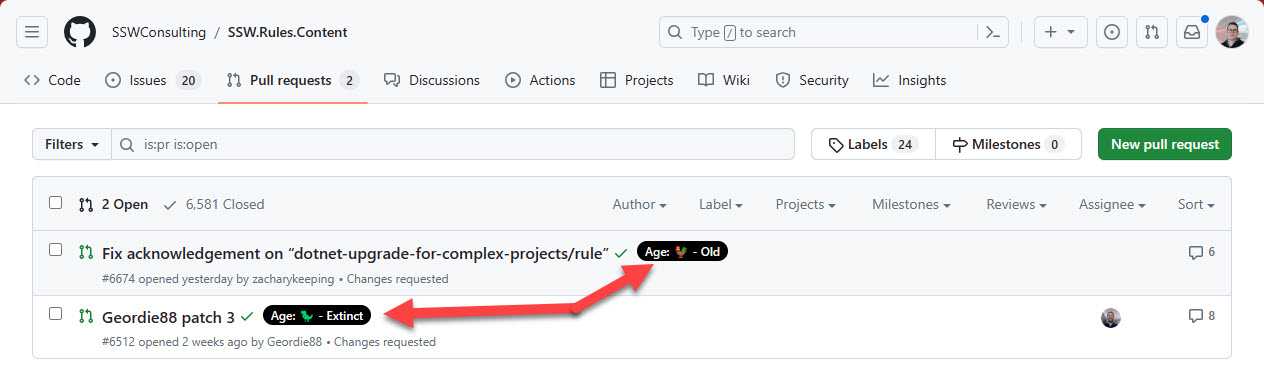 - Ensuring PRs don't stay open for too long - you could use SSW Dory to automatically inform you of any outstanding PRs