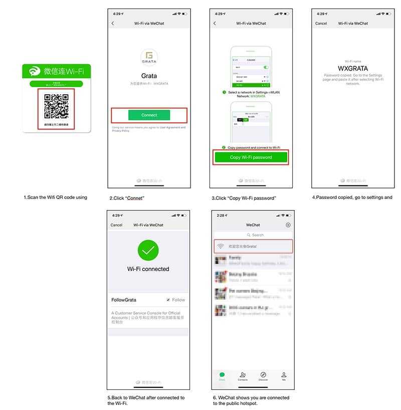 Wi-Fi via WeChat is a feature for businesses and public places offering free Wi-Fi hotspots to their customers. It’s a common service in China. Rather than having to find the publicly posted Wi-Fi password, users can login quickly using their WeChat accounts.