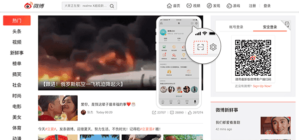 Figure: Use the Weibo App to scan a QR code to login to their services on the web 8. Use a QR code to connect to a hotspot