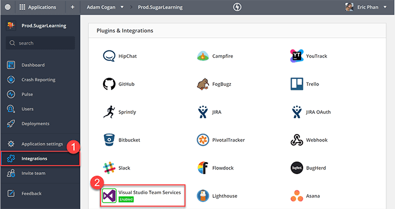 - Integrations to TFS/VisualStudio.com to create a Bug, Slack