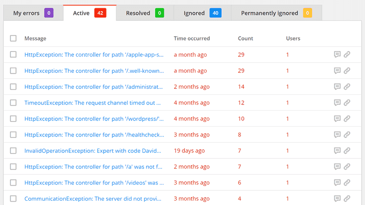 You should always keep on top of your RayGun crashreporting and not let the errors spiral out of control. If use RayGun with a web application, then you’ll frequently get a lot of errors with robots scanning the site and creating 404s.