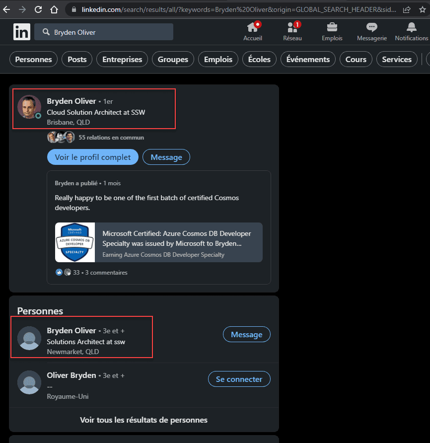 - You can search for people that you do not know using keywords like “NET Developer”, “Sydney”, or “University of Technology”.