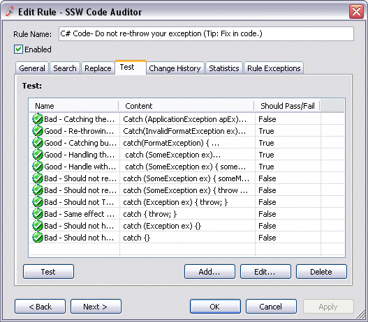 If your application is driven by regular expressions, you need a good test harness. Here is an example of a test harness we use in CodeAuditor.