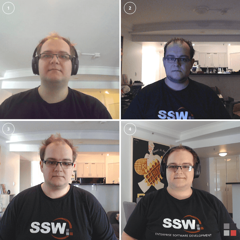 Figure: See how different lighting setups can impact remote meetings videos When working with clients, inevitably you'll find yourself in Teams calls, and it's important to keep your front-facing camera on as much as possible. There's a lot of valuable information conveyed by your face and body language.
