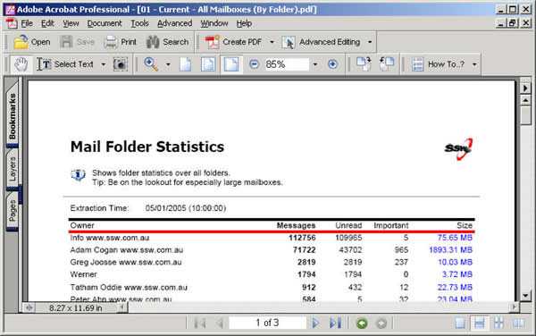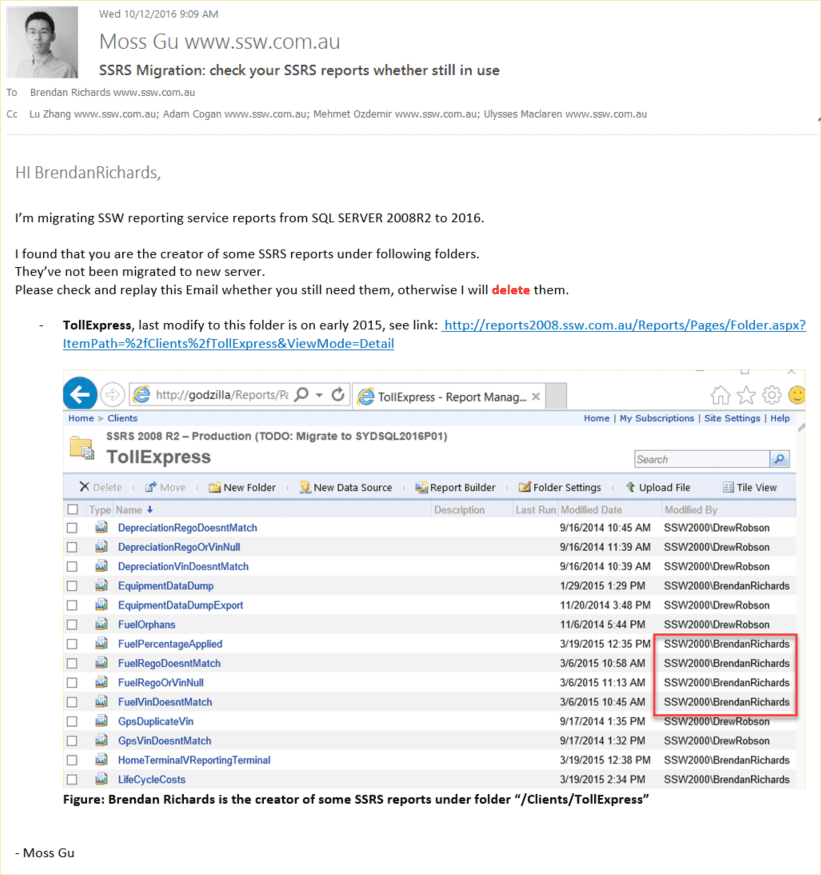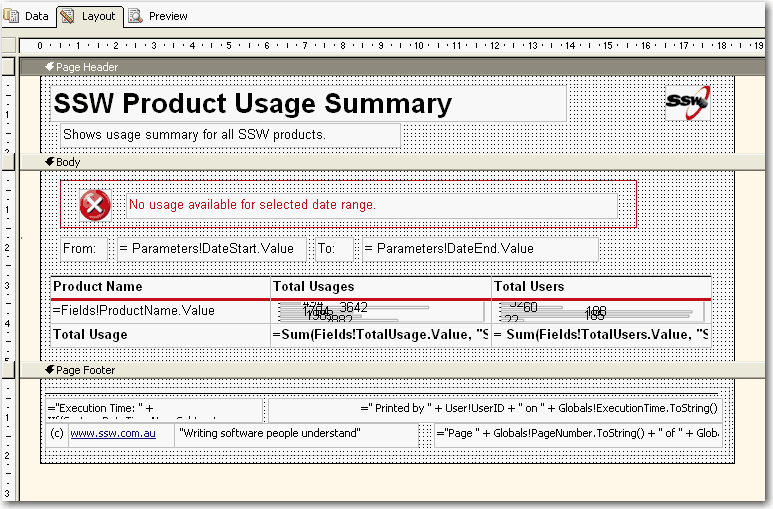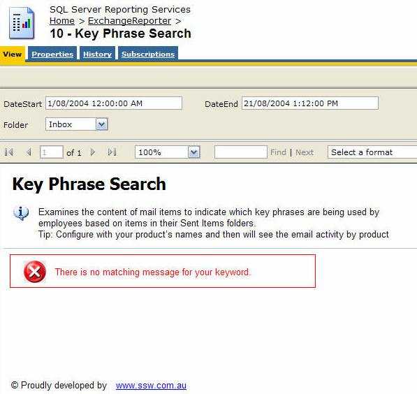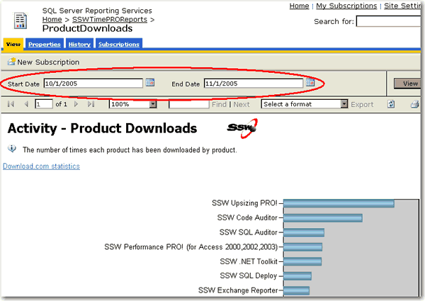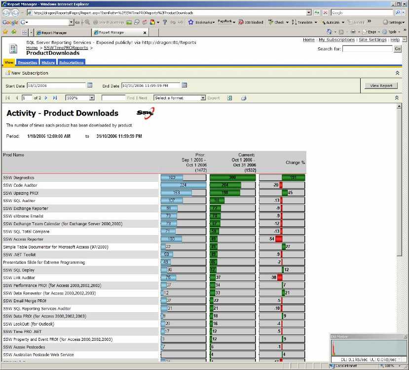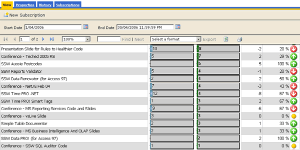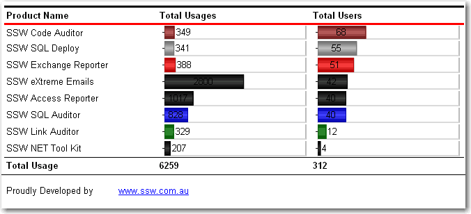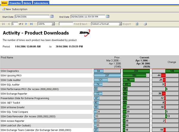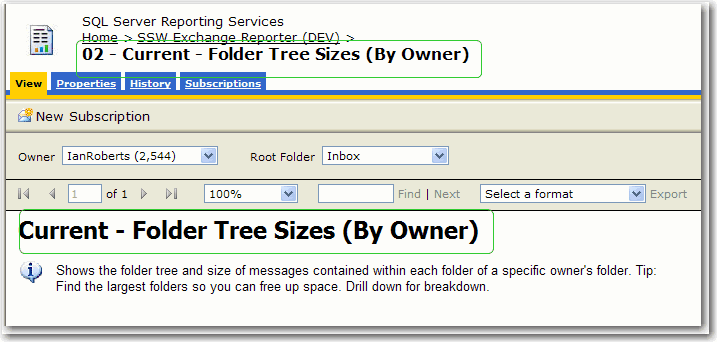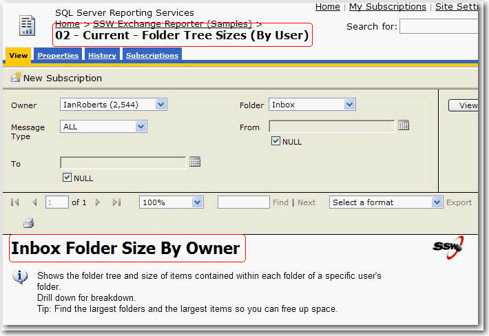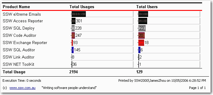 Figure: SSW SQL Reporting Services Auditor in Action! Download SSW SQL Reporting Services Auditor (Requires SQL Server 2005 Reporting Services).