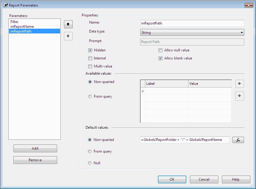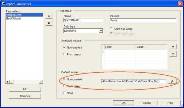 Figure: Report parameters