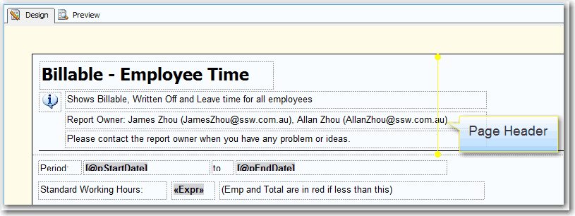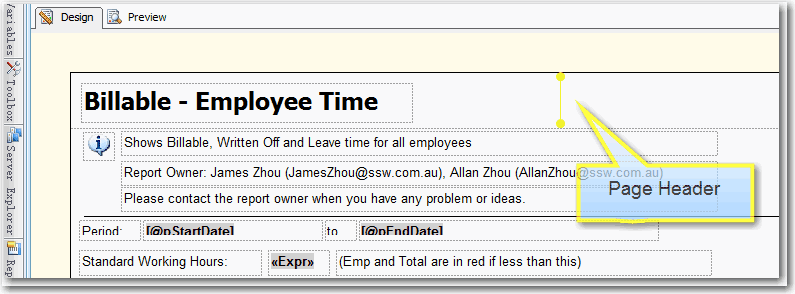 Good example - Useful and informative information should be displayed in your report footer Use these handy report expressions to show the above information.