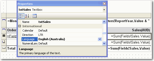 - Have the Language set specifically to the culture you want. e.g. If you do a report for Australian Dollars, then it should be "English(Australia)"; if for Chinese Yuan, it should be "Chinese(People's Republic of China)". Because the format of currency should not change as per user's culture setting as $100 AUD <> 100 CNY !