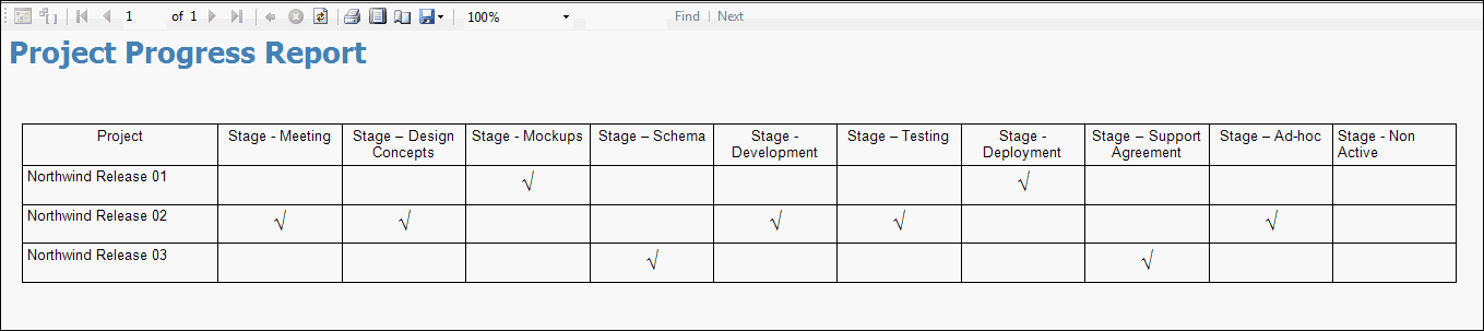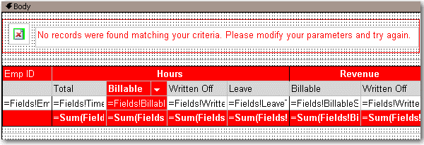 Figure: Good example - For proper printing, first change the Report's Page Width to 28cm (or 11in) and top and bottom margins to 0.5cm - Change the Body width to 25.4cm (or 10in)