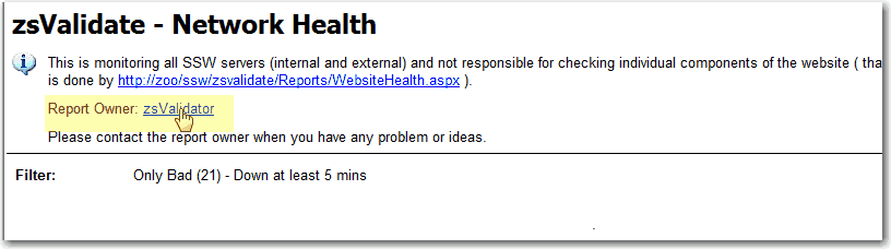 Figure: Good example - Show report owner in the report - When you cannot refer to a group, refer to the person Use the same idea for web pages, however in that case use the term "Page Owner"