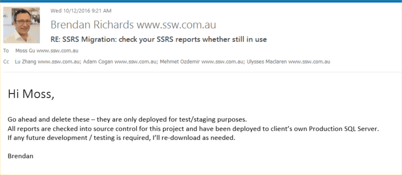 - Run SSW SQL Reporting Service Auditor on both sides